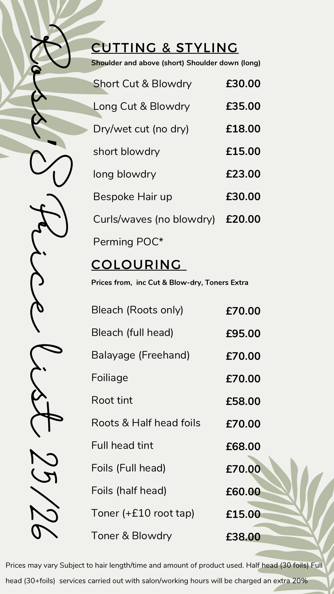 Ross' Price List